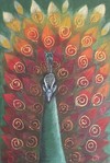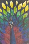 2017Groene pauw, waarbij in de veren zgn. 'skeleton leaves' zijn verwerkt.
